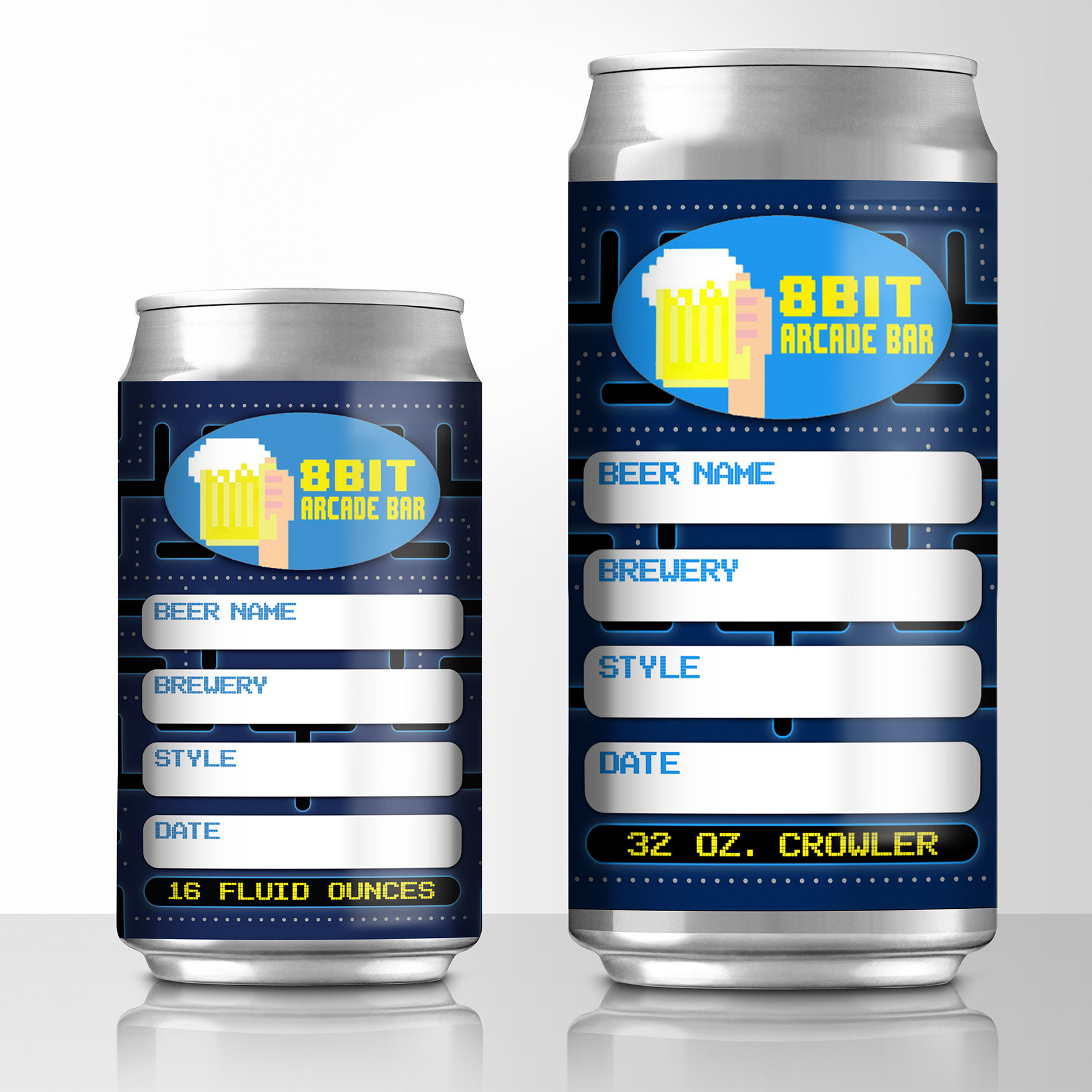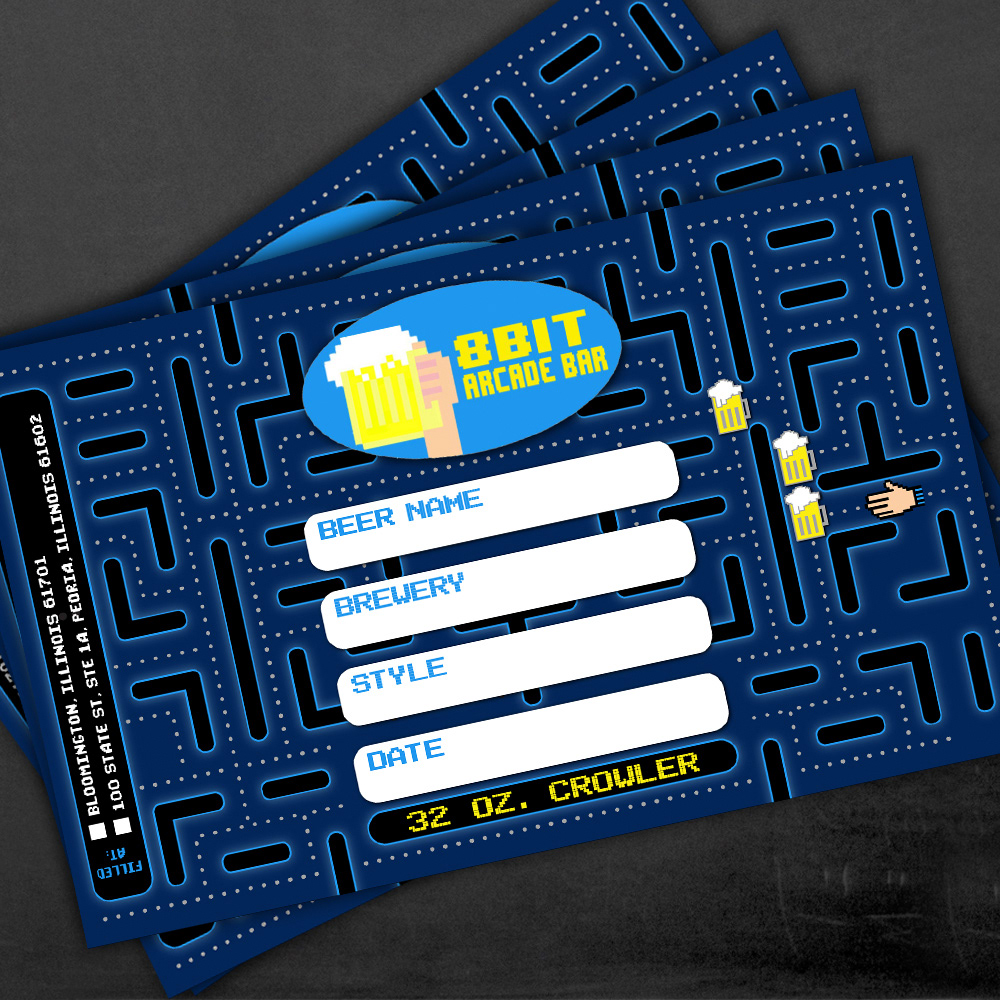Crowler Label design for 8-Bit Beercade in Peoria, IL